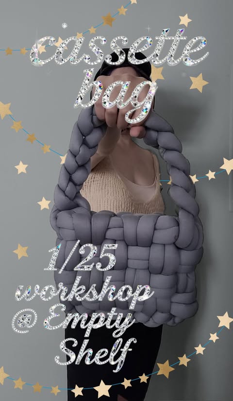 Join us at Empty Shelf for a cozy, hands-on workshop with artist Nancy Lee (@handmadebynensh). Learn unique weaving techniques using giant yarn to craft your very own stylish "cassette bag" from scratch.