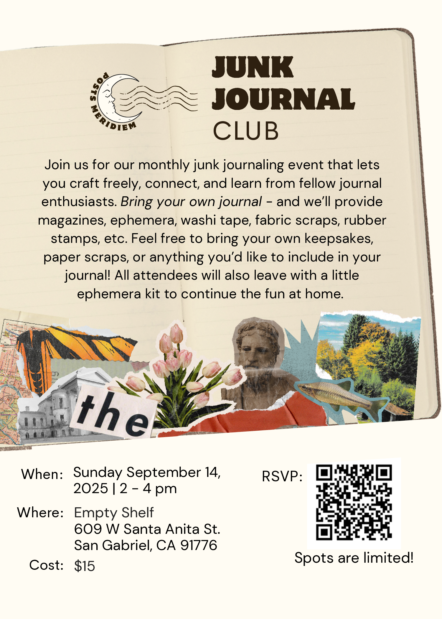 π Weβll provide magazines, ephemera, washi tape, fabric scraps, rubber stamps, and more