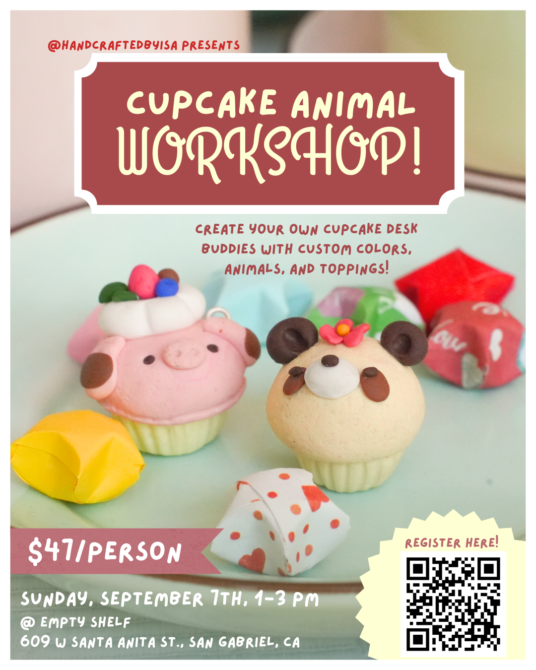 Join us at Empty Shelf for a sweet and creative afternoon sculpting adorable cupcake animal desk buddies with certified clay artist @handcraftedbyisa!